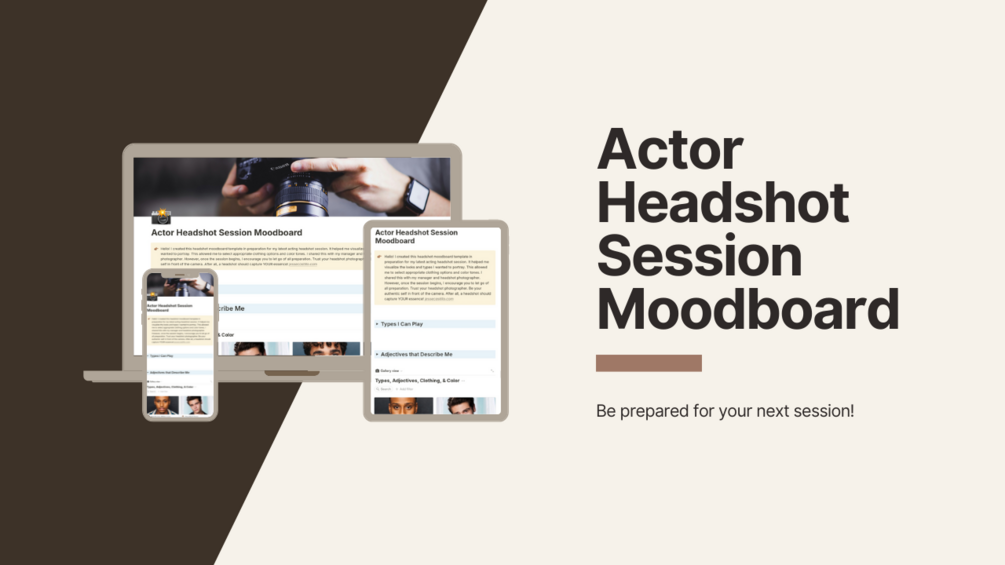 A moodboard template for inspiration and preparation for your next headshot session! The template is centered on the different types you as an actor can portray. It will help visualize proper clothing and color options in order to have a clear idea on what to bring to your upcoming session!